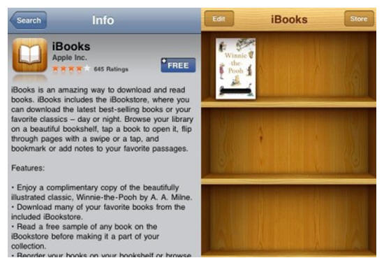 | Phần mềm đọc sách iBook như trong máy tính bảng iPad.